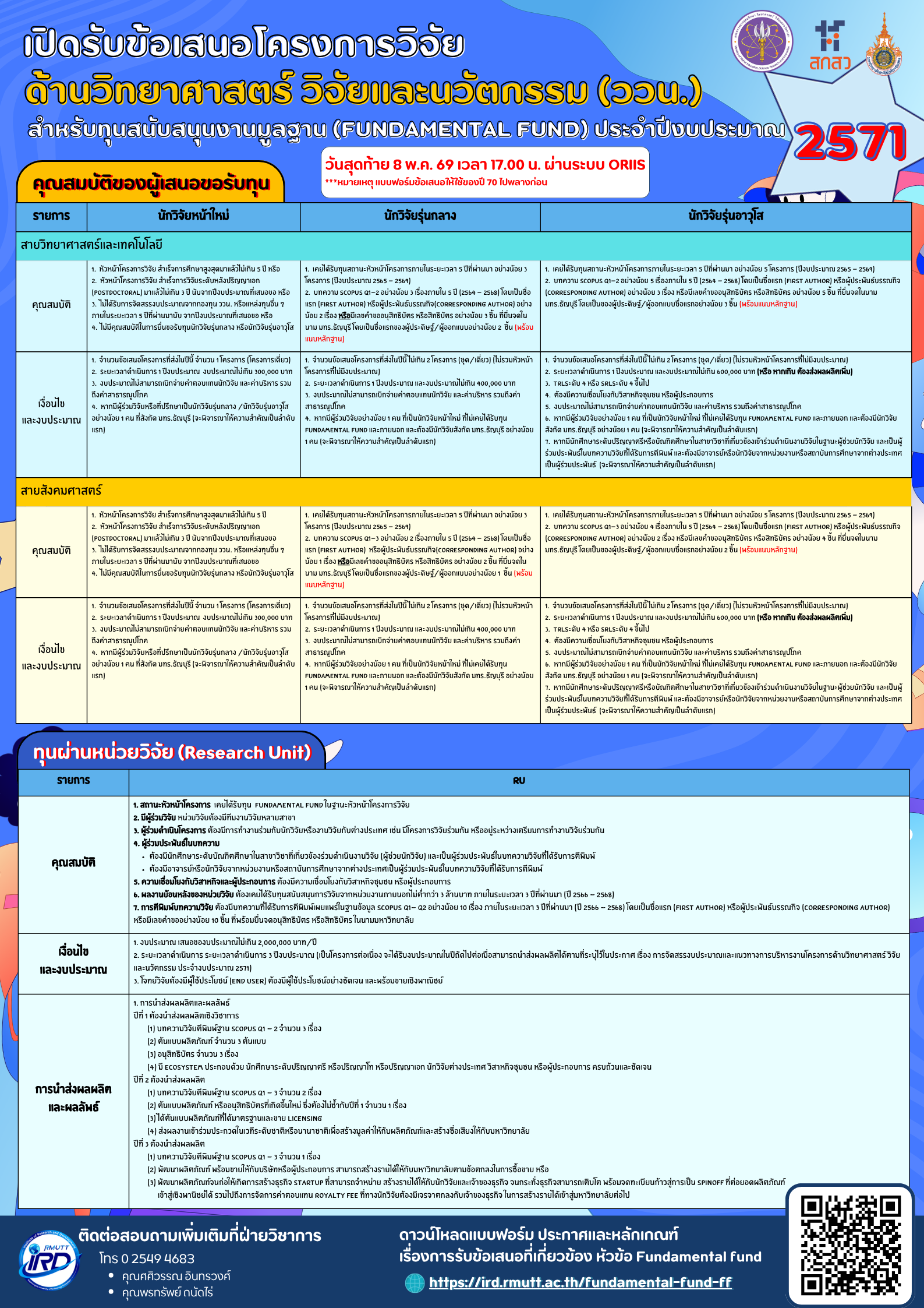 เปิดรับข้อเสนอโครงการ (Fundamental fund) งบประมาณด้าน ววน. ปี 2571