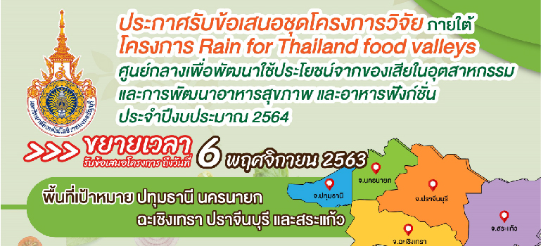 มทร.ธัญบุรี ขอให้นักวิจัยยื่นข้อเสนอแผนงาน/โครงการเพื่อขอทุน PMU B (บพค.) ผ่านระบบ NRIIS ภายในวันที่ 22 พฤศจิกายน 2563 เพื่อนำเสนอต่อผู้ทรงคุณวุฒิภายนอกในวันที่ 24 พฤศจิกายน 2563 หรือวันที่ 26 พฤศจิกายน 2563 ก่อนส่งไปยัง บพค. สามารถดาวน์โหลดแบบฟอร์มและส่งข้อเสนอได้ที่ http://nriis.nrct.go.th/NewsEventDetail.aspx?nid=6325 หมายเหตุ : กรณีนักวิจัยไม่ประสงค์นำเสนอต่อผู้ทรงคุณวุฒิ สามารถส่งผ่านระบบ NRIIS ภายในวันที่ 30 พฤศจิกายน 2563 ก่อนเวลา 12.00 น. เพื่อให้มหาวิทยาลัยรับรองข้อเสนอในระบบไปยังแหล่งทุน