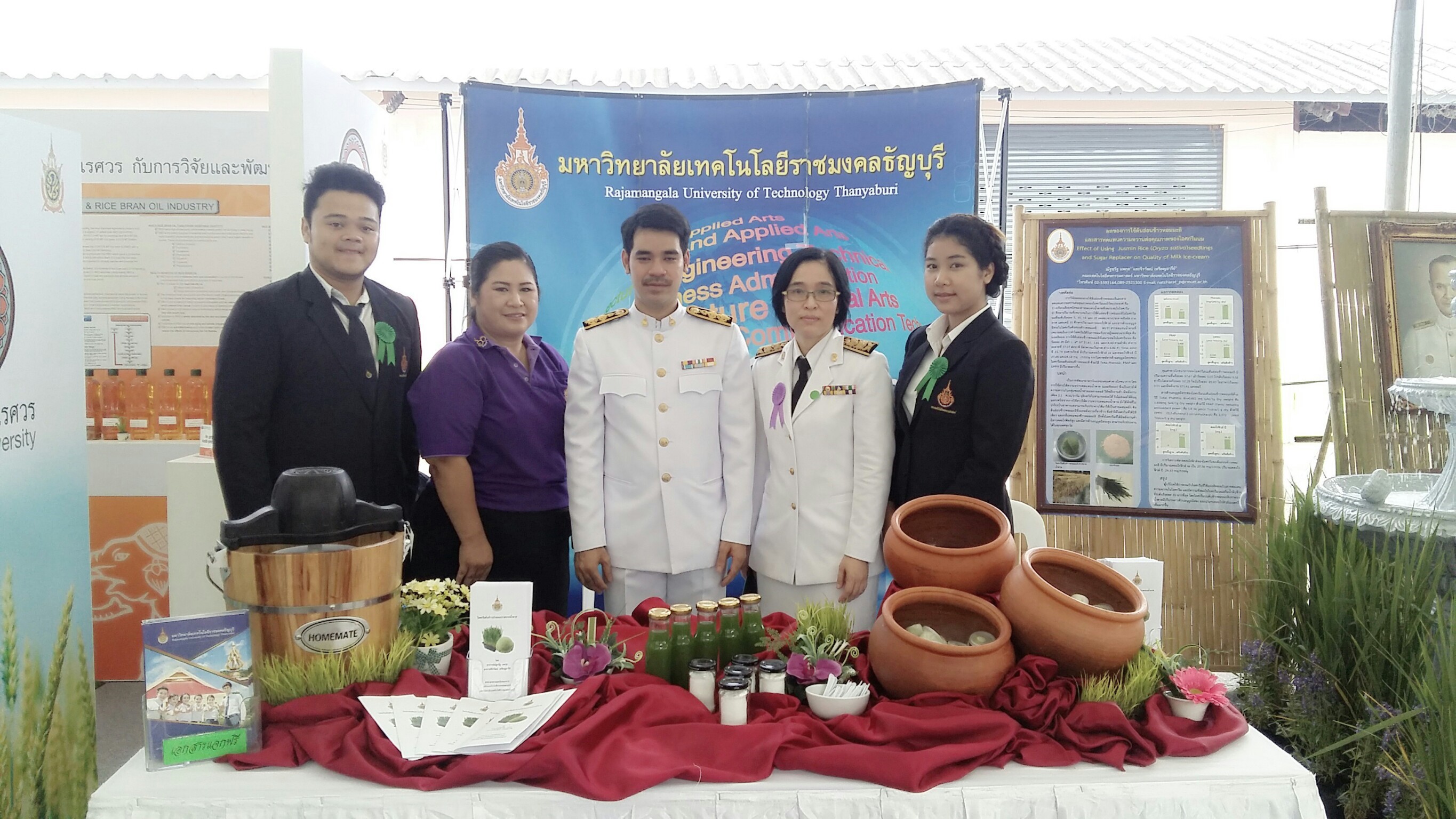 สถาบันวิจัยและพัฒนา มหาวิทยาลัยเทคโนโลยีราชมงคลธัญบุรี นำผลงานวิจัยของ อาจารย์ณัฐชรัฐ แพกุล เรื่อง “ผลของการใช้ต้นอ่อนข้าวหอมมะลิและสารสดแทนความหวานต่อคุณภาพของไอศกรีมนม” ซึ่งได้รับรางวัลประกาศเกียรติคุณ ในการประกวดผลงานวิจัยนวัตกรรม (The 6th Innovation Awards) เข้าร่วมจัดแสดงนิทรรศการในงานฉลองครบรอบ 100 ปี งานวิจัยข้าวไทย ระหว่างวันที่ 16-17 สิงหาคม 2559 ณ ศูนย์วิจัยข้ามปทุมธานี จ.ปทุมธานี โดยมีวัตถุประสงค์เพื่อรำลึกถึงพระมหากรุณาธิคุณของพระมหากษัตริย์ในราชวงศ์จักรี และคุณงามความดีของผู้มีส่วนในงานวิจัยและพัฒนาข้าวไทยในรอบ 100 ปี พร้อมทั้งฉลองครบ 100 ปี การก่อตั้งศูนย์วิจัยข้าวปทุมธานี
