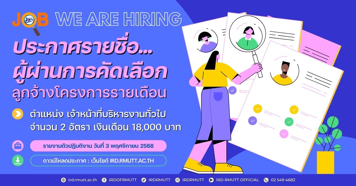 24/01/2020มทร.ธัญบุรี เข้าร่วมแสดงผลงานวิจัยเด่น ในงาน “วันนักประดิษฐ์ ประจำปี 2563”04/02/2020 Published by ADMIN_IRD RMUTT at 25/01/2020 Categories ข่าวประชาสัมพันธ์ Tags Post Views: 1,345 Share Related posts30/10/2025ประกาศ…รายชื่อผู้ผ่านการคัดเลือก ลูกจ้างโครงการรายเดือน ตำแหน่ง เจ้าหน้าที่บริหารงานทั่วไปRead more24/10/2025ประกาศ…รายชื่อผู้มีสิทธิ์สอบสัมภาษณ์ ลูกจ้างโครงการรายเดือน ตำแหน่ง เจ้าหน้าที่บริหารงานทั่วไปRead more15/10/2025ขอเชิญส่งผลงานเข้าร่วมการประกวด “รางวัลเชิดชูเกียรตินักวิจัย” ประจำปี 2568Read more14/10/2025ประกาศ…เปิดรับสมัครลูกจ้างโครงการรายเดือน ตำแหน่ง เจ้าหน้าที่บริหารงานทั่วไป จำนวน 2 อัตราRead more