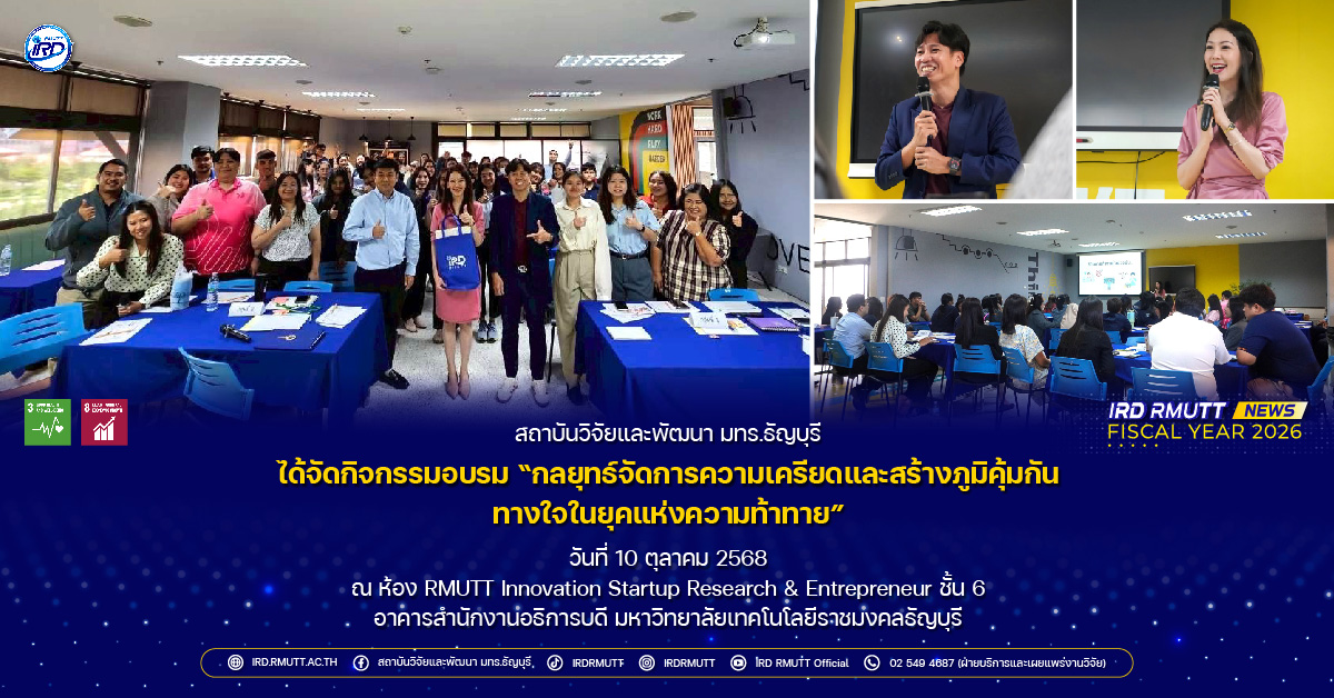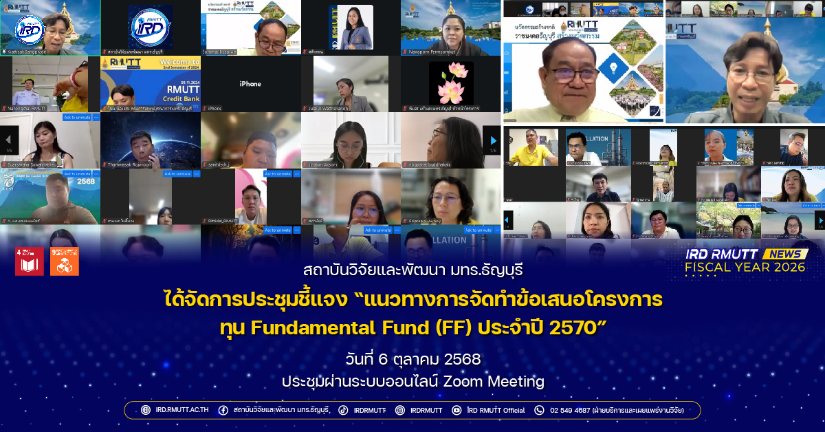 มหาวิทยาลัยเทคโนโลยีราชมงคลธัญบุรี นำโดย สถาบันวิจัยและพัฒนา มทร.ธัญบุรี โดยมี ผศ.ดร.พุทธิวัต สิงห์ดง รองผู้อำนวยการสถาบันวิจัยและพัฒนา นำทีมนักวิจัยและชุมชน ร่วมจัดนิทรรศการแสดงผลงานวิจัยที่มีเทคโนโลยีพร้อมใช้ กว่า 15 ผลงาน ในงาน Appropriate Technology MATCHING DAY 2024 โซนภาคกลาง “เทคโนโลยีพร้อมใช้ เพื่อชุมชนไทยยั่งยืน” ภายใต้แผนงาน RU การขยายผลวิจัยเทคโนโลยีที่เหมาะสม (Appropriate Technology) เพื่อยกระดับเศรษรูกิจฐานรากและแก้หนี้ครัวเรือน” ประจำปี 2567 ซึ่งเป็นความร่วมมือระหว่างหน่วยบริหารและจัดการทุนด้านการพัฒนาระดับพื้นที่ (บพท.) กับเครือข่ายมหาวิทยาลัยเทคโนโลยีราชมงคล และเครือข่ายมหาวิทยาลัยราชภัฏ