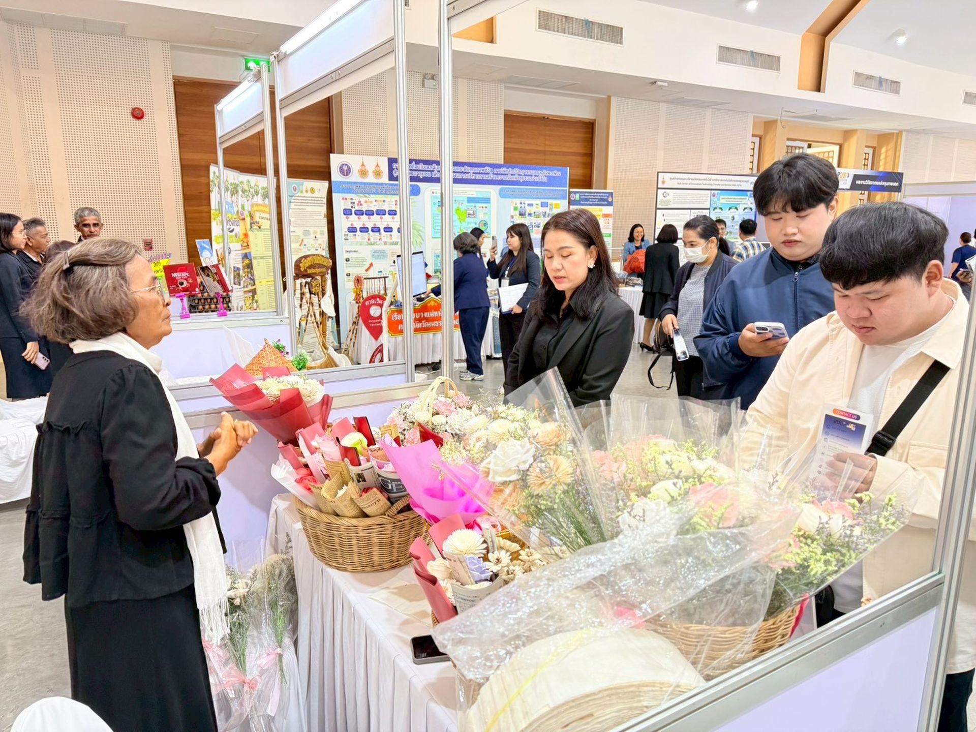 รองอธิการบดีฯ กล่าวเพิ่มเติมว่า การจัดงานครั้งนี้เป็นส่วนหนึ่งของการขับเคลื่อนนโยบายการพลิกโฉมมหาวิทยาลัย (Reinventing University) โดยมหาวิทยาลัยเทคโนโลยีราชมงคลสุวรรณภูมิ จัดอยู่ในกลุ่มสถาบันอุดมศึกษากลุ่มที่ 2 กลุ่มการพัฒนาเทคโนโลยีและส่งเสริมการสร้างนวัตกรรม มีเป้าหมายในการสร้างผู้เชี่ยวชาญด้านเทคโนโลยี ผลิตนวัตกรรมสู่เชิงพาณิชย์ และส่งเสริมความร่วมมือกับทุกภาคส่วนอย่างเป็นระบบ โดยภายในงานมีการจัดแสดงผลงานวิจัยและนวัตกรรมมากกว่า 70 ผลงาน ครอบคลุมด้านเทคโนโลยีอุตสาหกรรม เกษตรและอาหาร สุขภาพ ธุรกิจสร้างสรรค์ และนวัตกรรมเพื่อสังคมและความยั่งยืน ซึ่งเป็นผลงานที่มีความพร้อมใช้ พร้อมขาย และสามารถสร้างมูลค่าเพิ่มทางเศรษฐกิจได้ทันที รวมถึงผลงานสิ่งประดิษฐ์และแผนธุรกิจของกลุ่ม Startup ที่สะท้อนศักยภาพของคณาจารย์ นักวิจัย และนักศึกษา