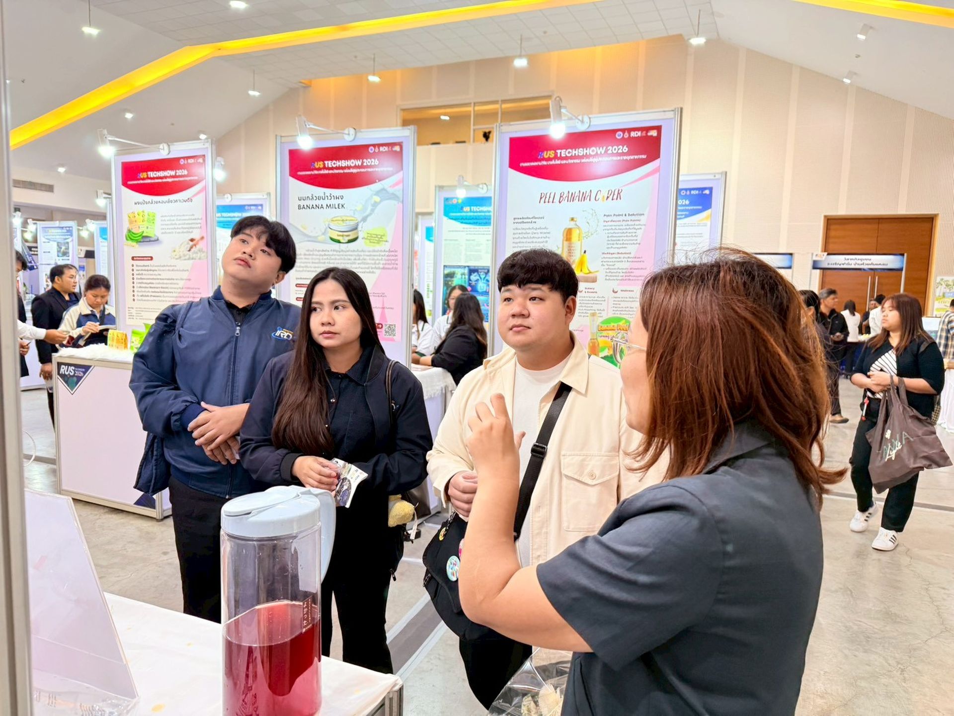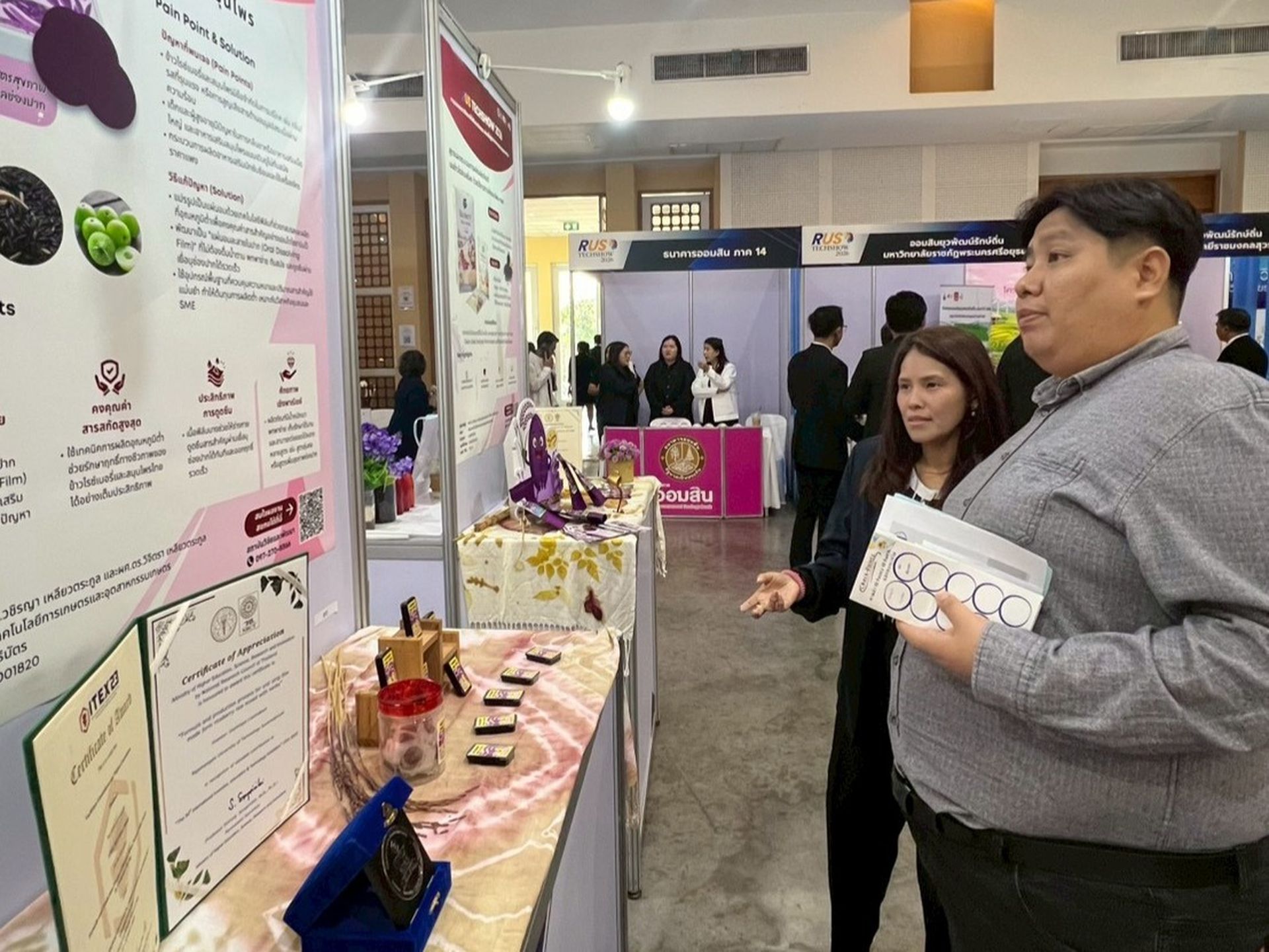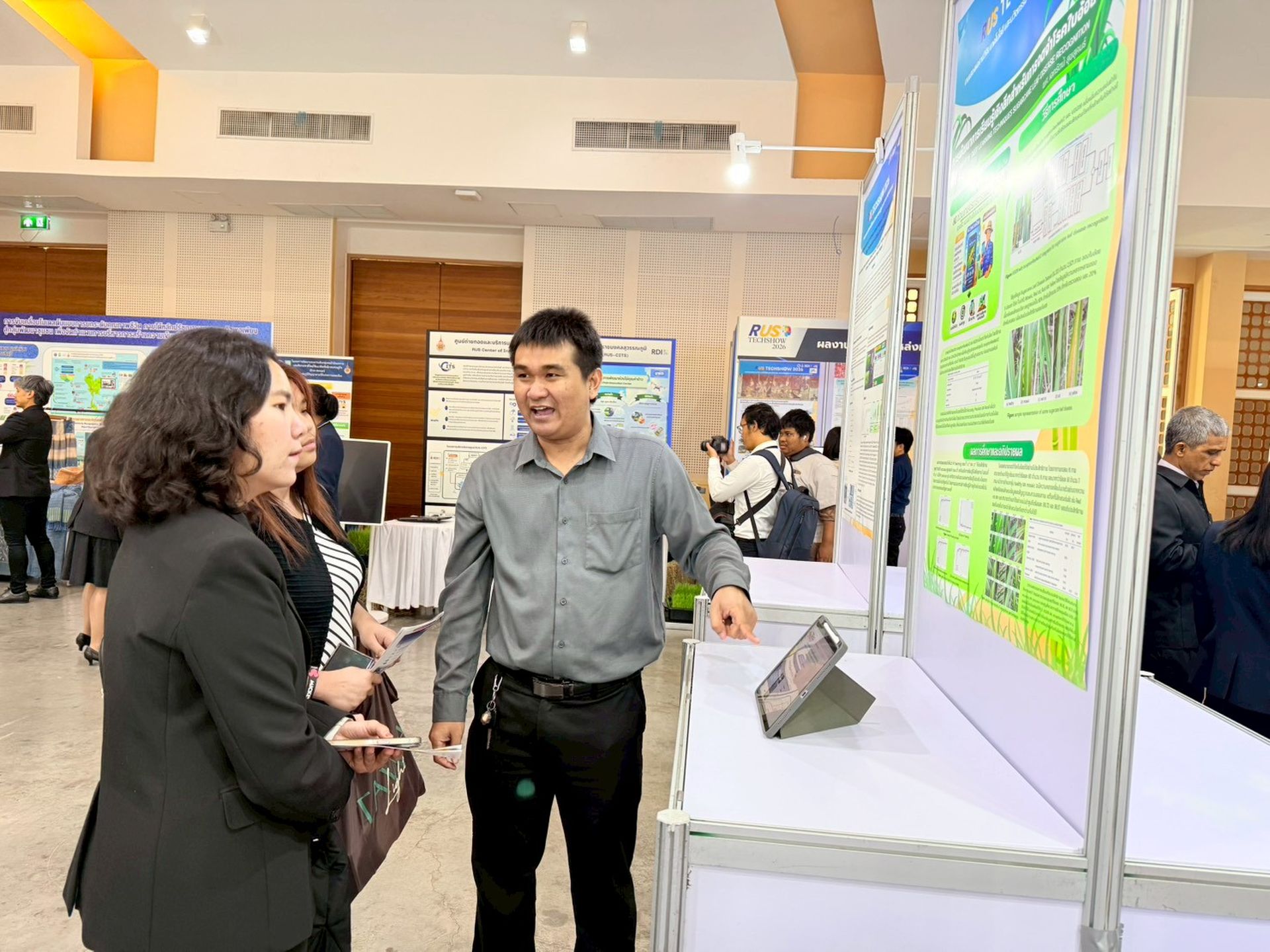 29/01/2026ในวันที่ 28 มกราคม 2569 สถาบันวิจัยและพัฒนา มทร.ธัญบุรี นำโดย ผศ.ดร.ภญ.เอมอร น้ำหอมจันทร์ รองผู้อำนวยการสถาบันวิจัยและพัฒนา พร้อมกับเจ้าหน้าที่ สวพ. ได้เข้าร่วมงานแสดงผลงานวิจัย เทคโนโลยี และนวัตกรรมพร้อมใช้สู่ผู้ประกอบการและภาคอุตสาหกรรม “RUS TechShow 2026” จัดโดย สถาบันวิจัยและพัฒนา มหาวิทยาลัยเทคโนโลยีราชมงคลสุวรรณภูมิ เพื่อเป็นเวทีเชื่อมโยงองค์ความรู้จากมหาวิทยาลัยไปสู่ภาคการผลิต ภาคธุรกิจ และภาคชุมชน อันจะนำไปสู่การใช้ประโยชน์จากงานวิจัยและนวัตกรรมอย่างเป็นรูปธรรม และการขับเคลื่อนเศรษฐกิจและสังคมของประเทศอย่างยั่งยืน ณ หอประชุมพระพิรุณ ระลึกโปรดเกล้า มหาวิทยาลัยเทคโนโลยีราชมงคลสุวรรณภูมิ ศูนย์พระนครศรีอยุธยา หันตรา