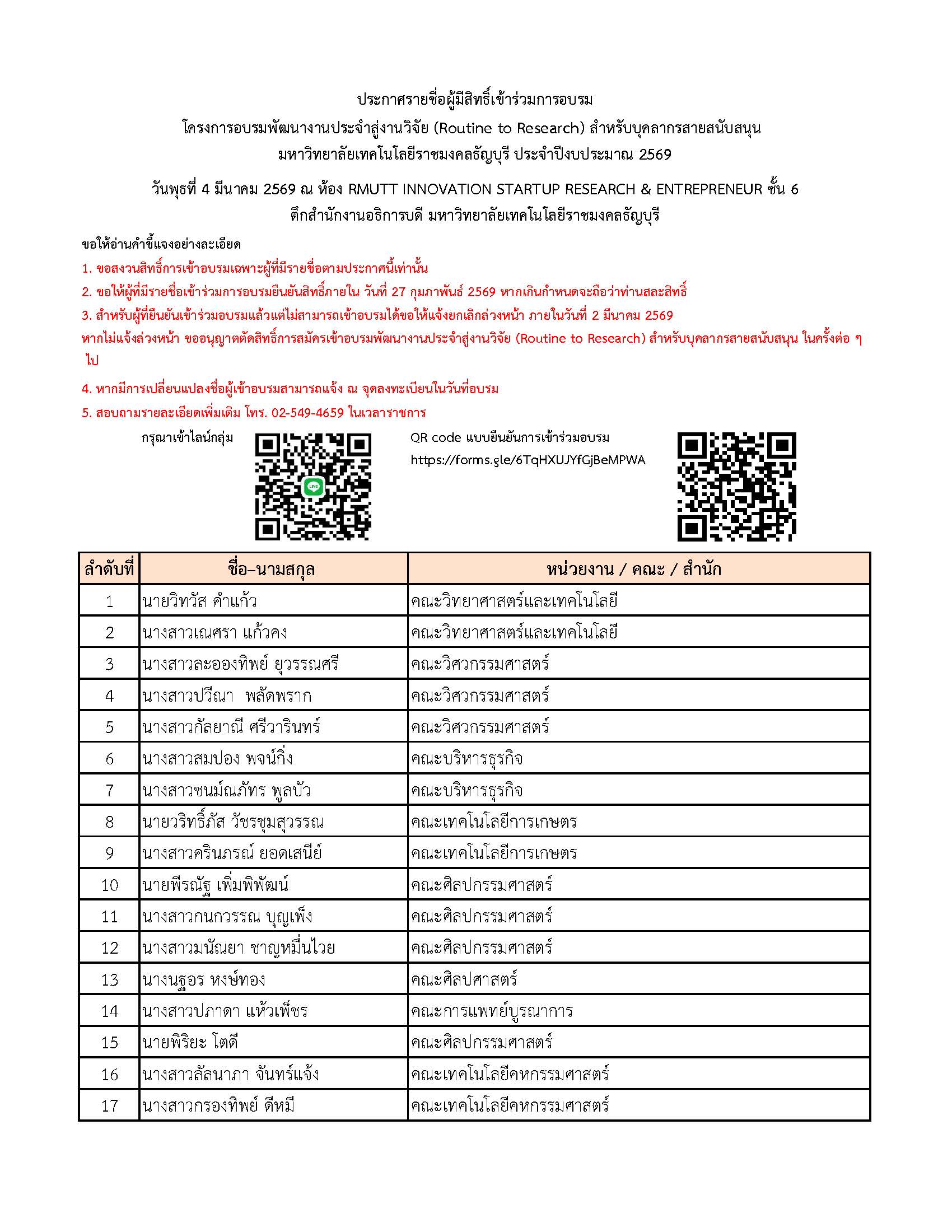 ฟิล์มชีวภาพจากวุ้นมะพร้าว26/02/2026แจ้งปิดทำการสำนักงาน26/02/2026 Published by ADMIN_IRD RMUTT at 26/02/2026 Categories ข่าวประชาสัมพันธ์ Tags ดาวน์โหลดประกาศผู้มีสิทธิ์เข้าร่วมการอบรม Post Views: 42 Share Related posts26/02/2026แจ้งปิดทำการสำนักงานRead more03/02/2026มทร.ธัญบุรี ต่อยอดความสำเร็จจากรางวัล สู่การใช้ประโยชน์จริงRead more29/01/2026ประกาศ…รายชื่อผู้ผ่านการคัดเลือก ลูกจ้างโครงการรายเดือน ตำแหน่ง เจ้าหน้าที่บริหารงานทั่วไปRead more26/01/2026ประกาศ…รายชื่อผู้มีสิทธิ์เข้ารับการประเมิน ลูกจ้างโครงการรายเดือน ตำแหน่ง เจ้าหน้าที่บริหารงานทั่วไปRead more