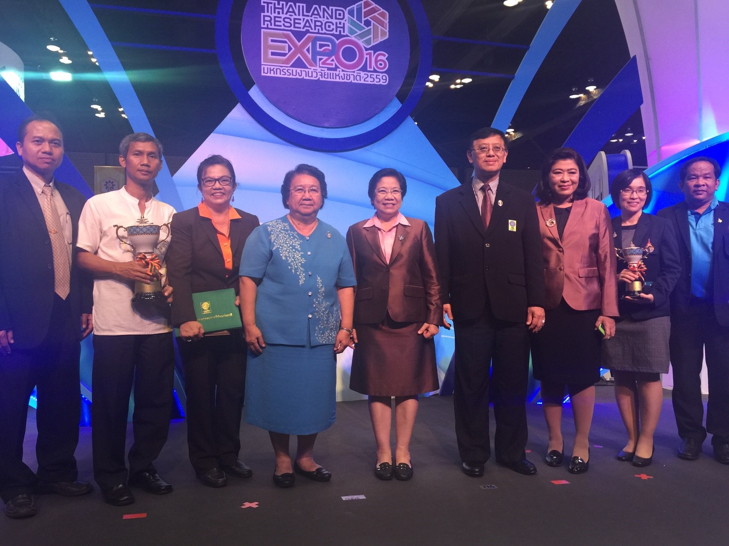 ทั้งนี้ได้รับเกียรติจาก ผศ.ดร.วารุณี อริยวิริยะนันท์ ผู้อำนวยการสถาบันวิจัยและพัฒนา เป็นตัวแทนมหาวิทยาลัยในการรับโล่ เกียรติบัตรและถ้วยรางวัล Bronze Award จาก เลขาธิการคณะกรรมการวิจัยแห่งชาติ ในวันอาทิตย์ที่ 21 สิงหาคม 2559 ณ โรงแรมเซ็นทาราแกรนด์ และบางกอกคอนเวนชั่นเซ็นเตอร์ เซ็นทรัลเวิลด์ กรุงเทพฯ
