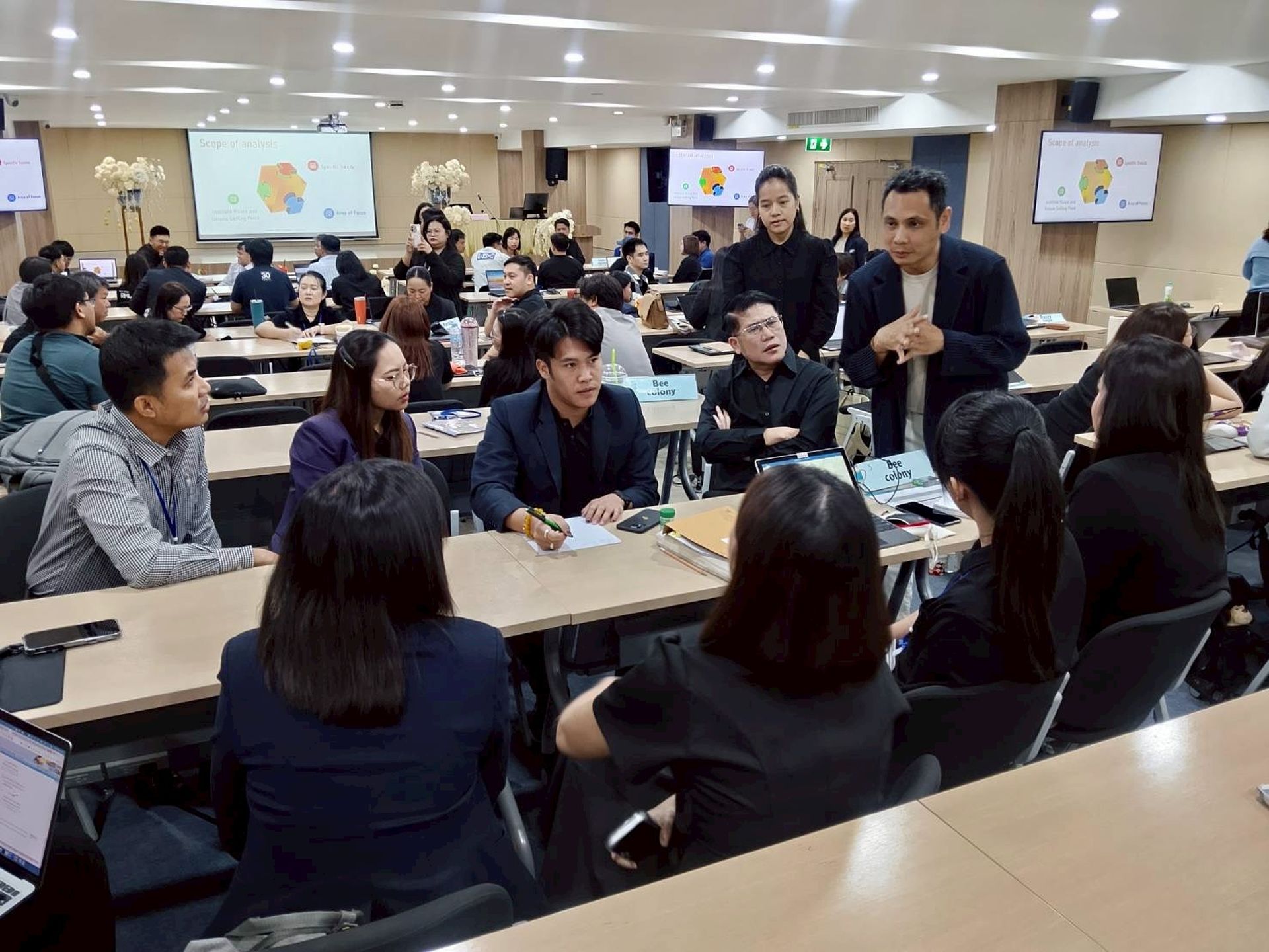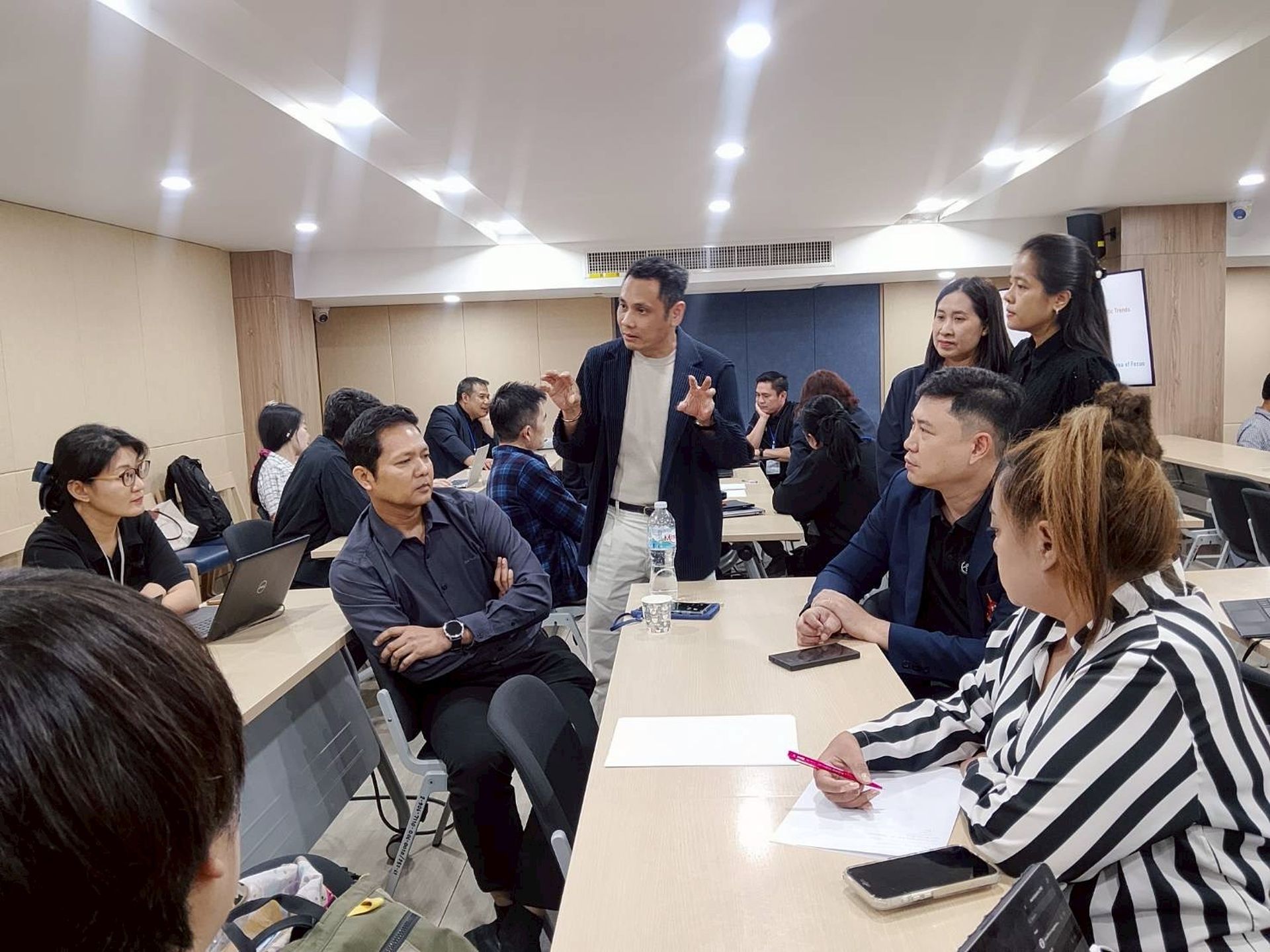 ภายในกิจกรรมนอกจากการได้ลงมือปฏิบัติจริงแล้วนั้น ยังได้รับฟังการบรรยายเกี่ยวกับแนวคิด การนำเทคโนโลยีจากงานวิจัยไปสู่การใช้ประโยชน์จริงในตลาด (Technology Commercialization) โดยอธิบายกระบวนการพัฒนานวัตกรรมตั้งแต่แนวคิด จนถึงการผลิตและการนำไปใช้จริง นอกจากนี้ ยังได้อธิบายแนวคิดสำคัญในการประเมินศักยภาพของงานวิจัย ได้แก่ การพิจารณาความเป็นไปได้ของเทคโนโลยี (Feasibility) ความต้องการของผู้ใช้หรือสังคม (Desirability) และความสามารถในการสร้างความยั่งยืนทางธุรกิจ (Viability) รวมถึงแนวคิด Strategic Foresight ซึ่งเป็นเครื่องมือสำคัญในการวิเคราะห์แนวโน้มและการคาดการณ์อนาคต เพื่อช่วยให้องค์กรสามารถวางแผนกลยุทธ์ด้านนวัตกรรมและการพัฒนาเทคโนโลยีได้อย่างมีประสิทธิภาพ